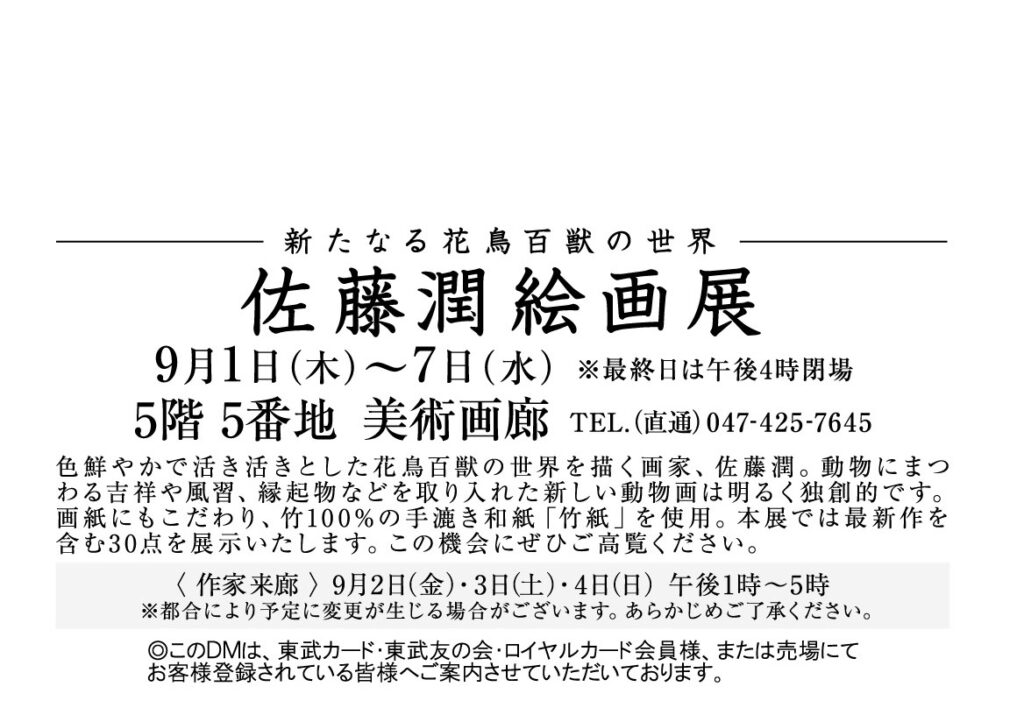 佐藤潤絵画展-新たなる花鳥百獣の世界-