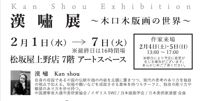 【作家来廊】2月4日(土)・5日(日)各日午後1時~5時