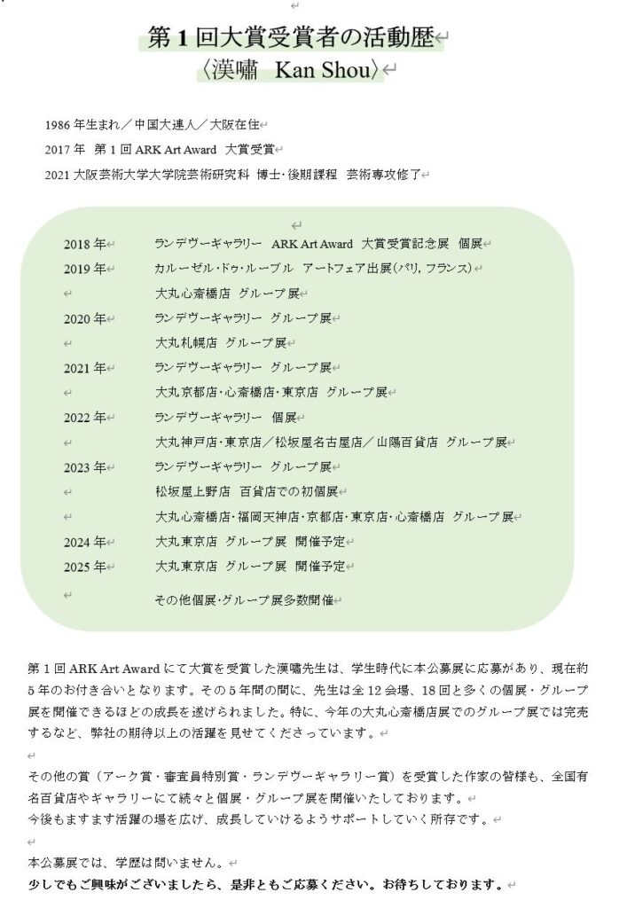 ※アーク賞、審査員特別賞、ランデヴギャラリー賞入賞者はギャラリーにてグループ展