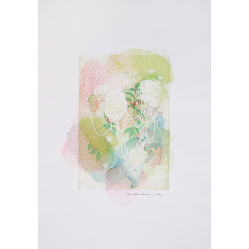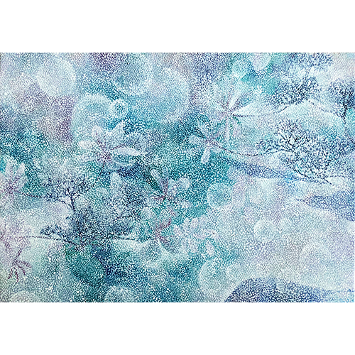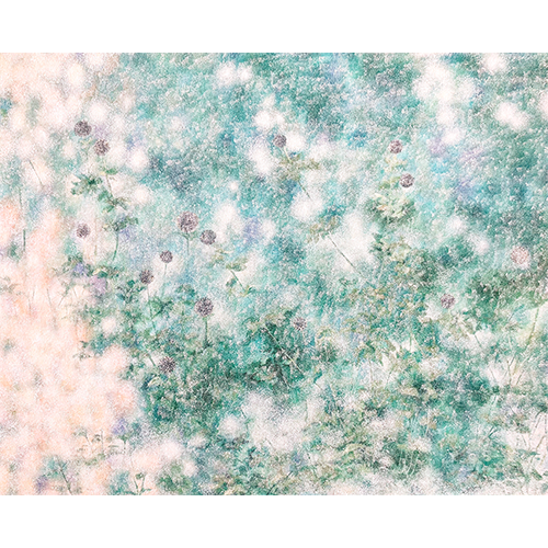 私が描くモチーフは、ゆっくり循環している時間を感じる空間の中にある空気や度、気配という目に見えない自然であり、自然から受ける皮膚感覚的なものに近い。絵の中の広く深い空間に溶け込み、包まれて消えてしまいそうな空間を絵の中に閉じ込めたい。確かに存在しているのに、自然と一体となる感覚からその存在が消えてしまいそうな、また、存在が消えてしまいそうだからこそ実感できる【存在】を微かにとどめておきたい。