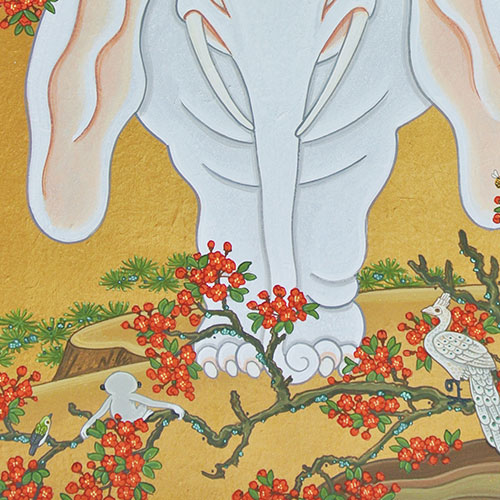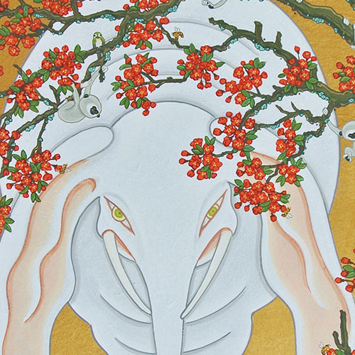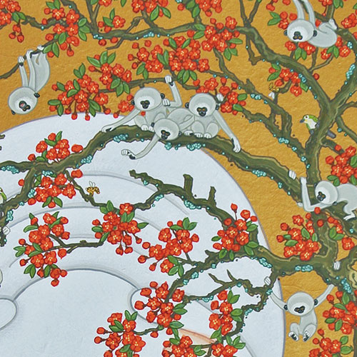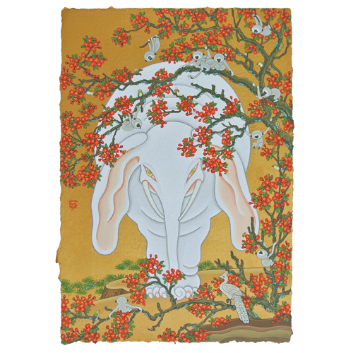 手漉きの竹紙に絶滅危惧種や吉祥にまつわる動物たちを美しく描く