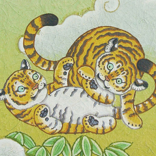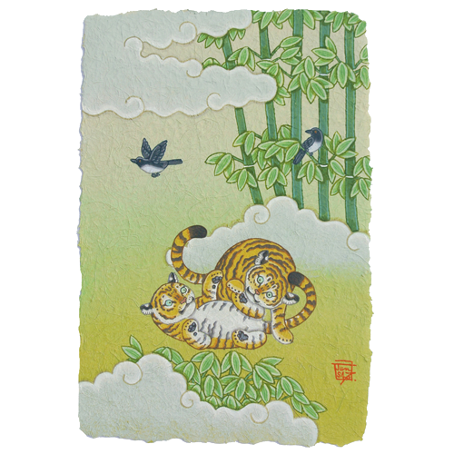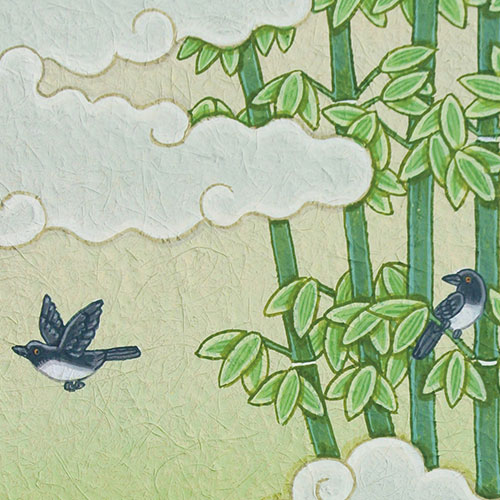 手漉きの竹紙に絶滅危惧種や吉祥にまつわる動物たちを美しく描く