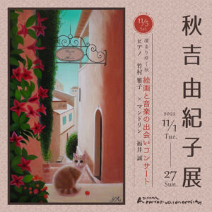 舞妓の魅力やはんなりと過ごす日常を温かい視点で描き、観る者の心をほっこりさせます。 独特の線で明るくポップにかわいらしく描く舞妓シリーズの油絵を中心に、舞妓の姿をいろいろな形で表現しています。 「幸せが舞い込む」とも言わ […]